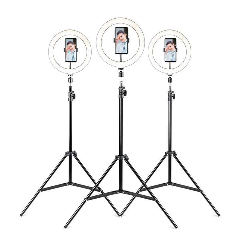 Довжина кронштейна становить 72-210 см, зі стабільною конструкцією штатива, який можна регулювати по висоті. Гнучкі поворотні адаптери відповідають вашим потребам для перегляду мобільного телефону в різних напрямках. Затискачі виготовлені з еластичного силікону, щоб обладнання було безпечним, стійким і не впав. Кронштейн має спіральну конструкцію затиску, яку можна зафіксувати всього за один оборот, що дуже зручно. Три режими світіння теплий, холодний, і денний. Легке обертання 360 градусів. Діаметр кільцевої лампи складає 10 дюймів (26см). Кількість LED діодів в лампі - 120шт. Живлення від USB.
